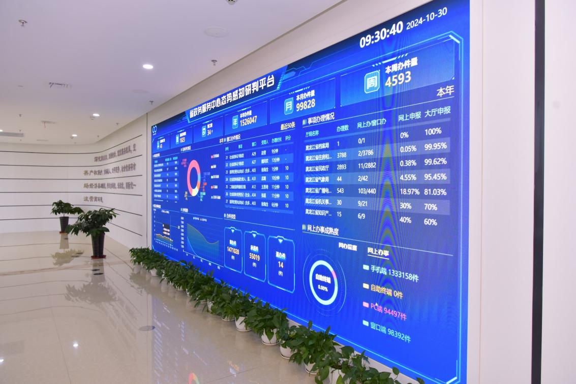 图为黑龙江省政务服务中心内大屏。