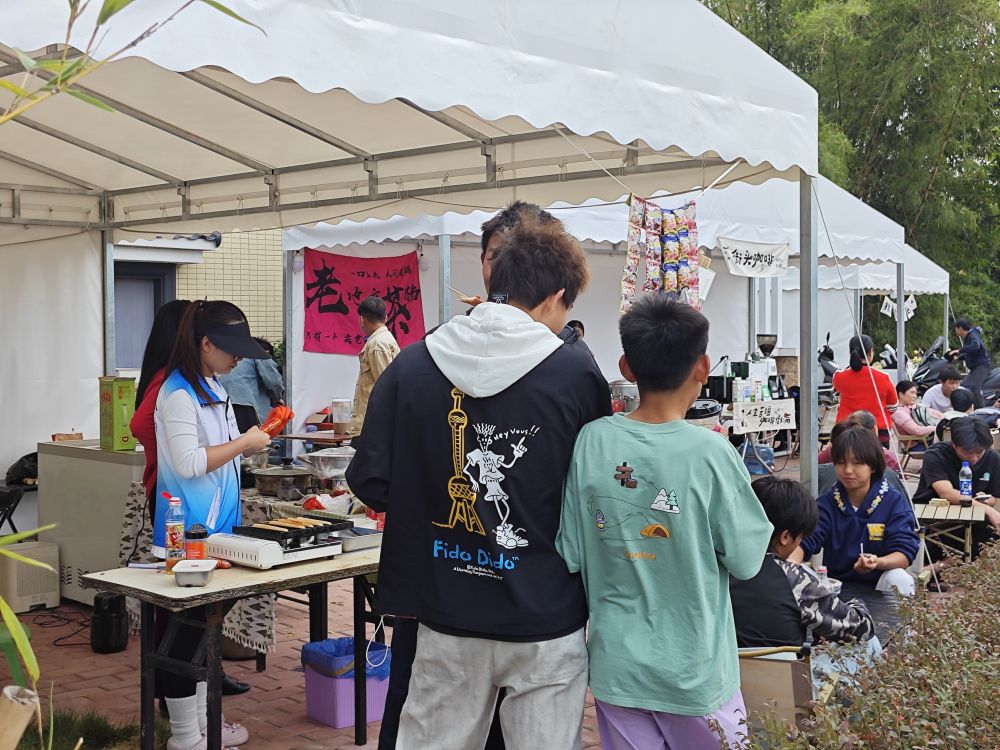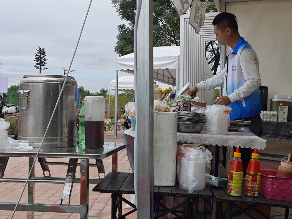 闲谈间,不断有人来吃牛杂面,隔壁摊位的咖啡也很走俏,烤肠也卖得好。