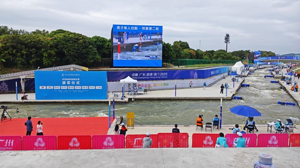 新华社广州11月13日电(记者季嘉东)钟落潭镇米岗村这几天挺热闹,因为第十五届全运会皮划艇激流回旋比赛在这里举办。村民们都来看,小孩骑在大人肩膀上,大人站在马路边上,更会享受的坐在折叠椅上,把咖啡放在脚边。
